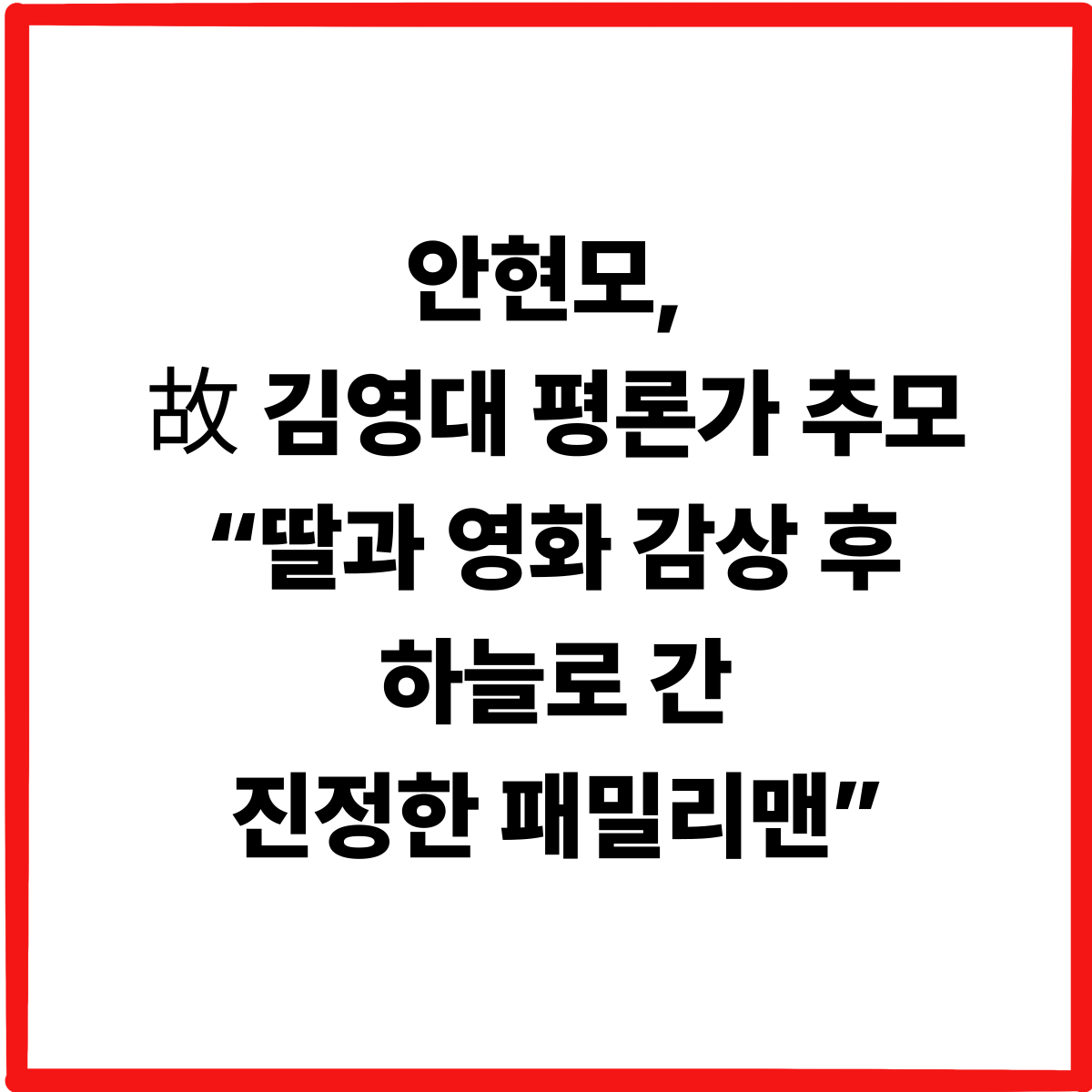 안현모, 故 김영대 평론가 추모 “딸과 영화 감상 후 하늘로 간 진정한 패밀리맨”